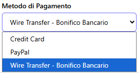 At the top left, you will be able to choose your preferred payment method (e.g. credit card, bank transfer, PayPal).