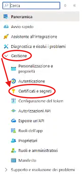 6. Access the app and in the left-hand menu select Manage > Certificates & secrets.
