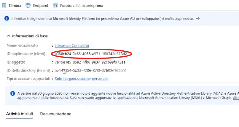 15. For the App Client ID field, go back to the Azure page for the Libraesva Connector app, click on Overview and copy the Application (client) ID.