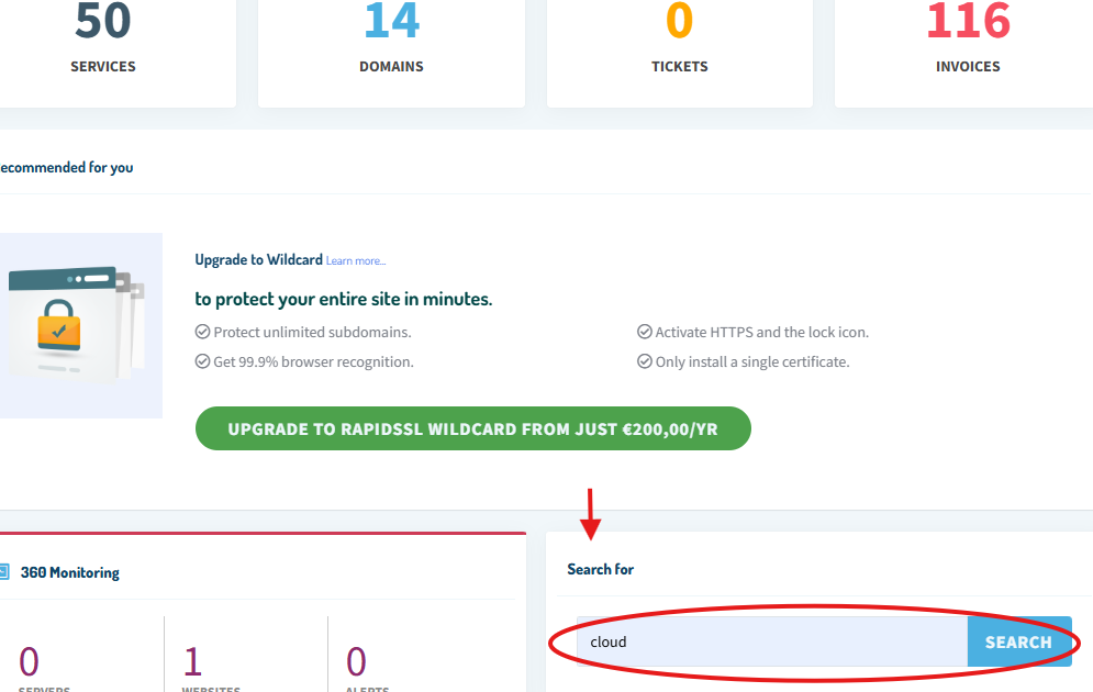 Use the search bar below. Type Cloud and press Enter to display relevant services.