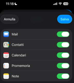 Finally, make sure all desired services (mail, contacts, calendars, etc.) are enabled, then tap Save to complete the configuration.