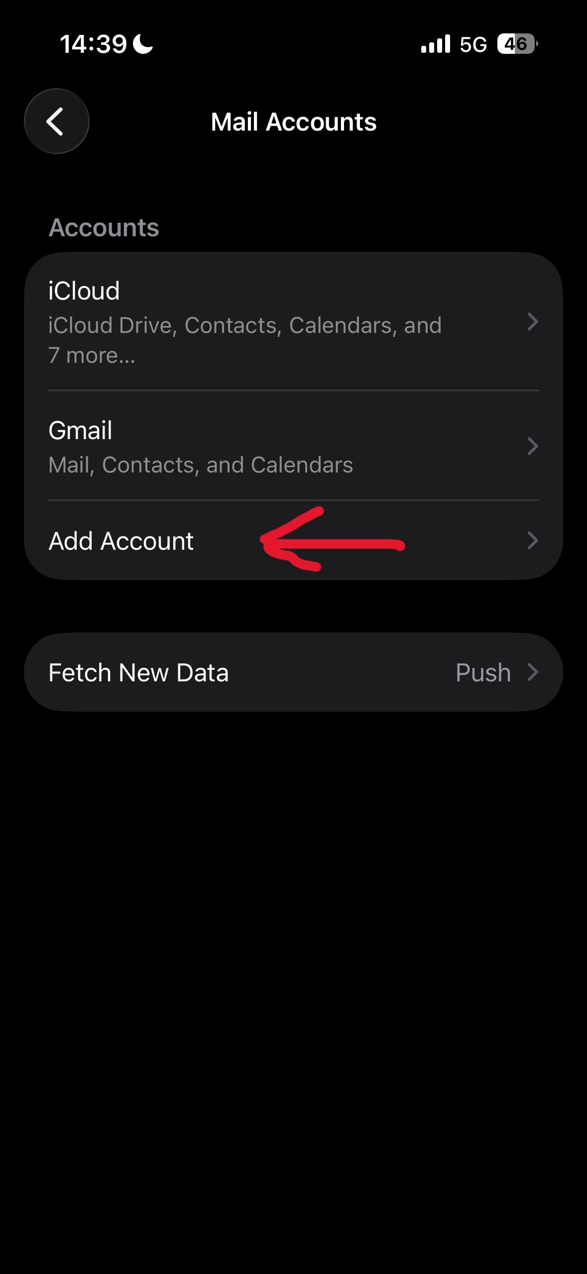 If an old Mail account is already configured and no longer needed, tap on it and select Delete Account. Confirm the action when prompted.