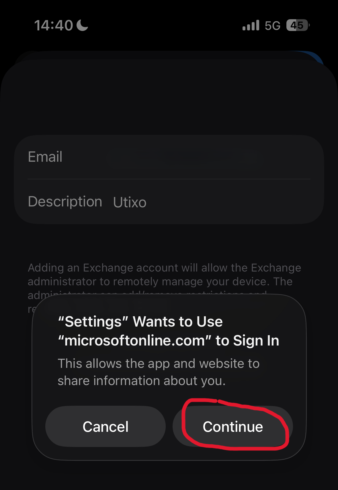 In the Email field, enter your email address. In the Description field, provide a label for this account (e.g., "Work", "Personal").